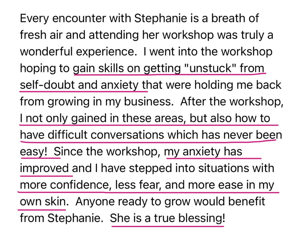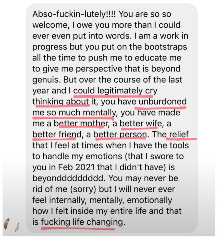 People noticed. My energy changed. I finally felt confident in myself.. I could walk into situations that once triggered me and stay grounded. I trusted myself.
