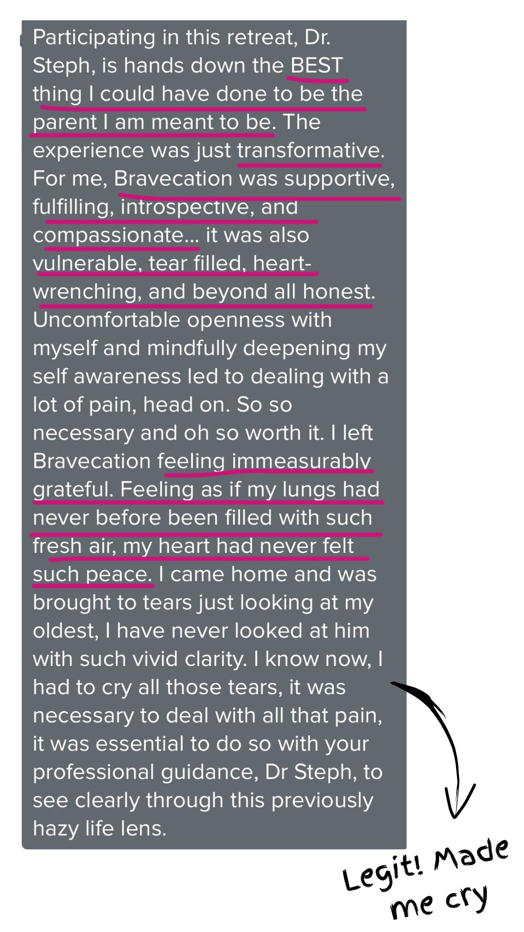 Taking BRAVE almost felt like someone had removed my blinders. It has completely changed my mindset and definitely been life changing for me. If you are struggling or feel like you're a bad mom, go for it!