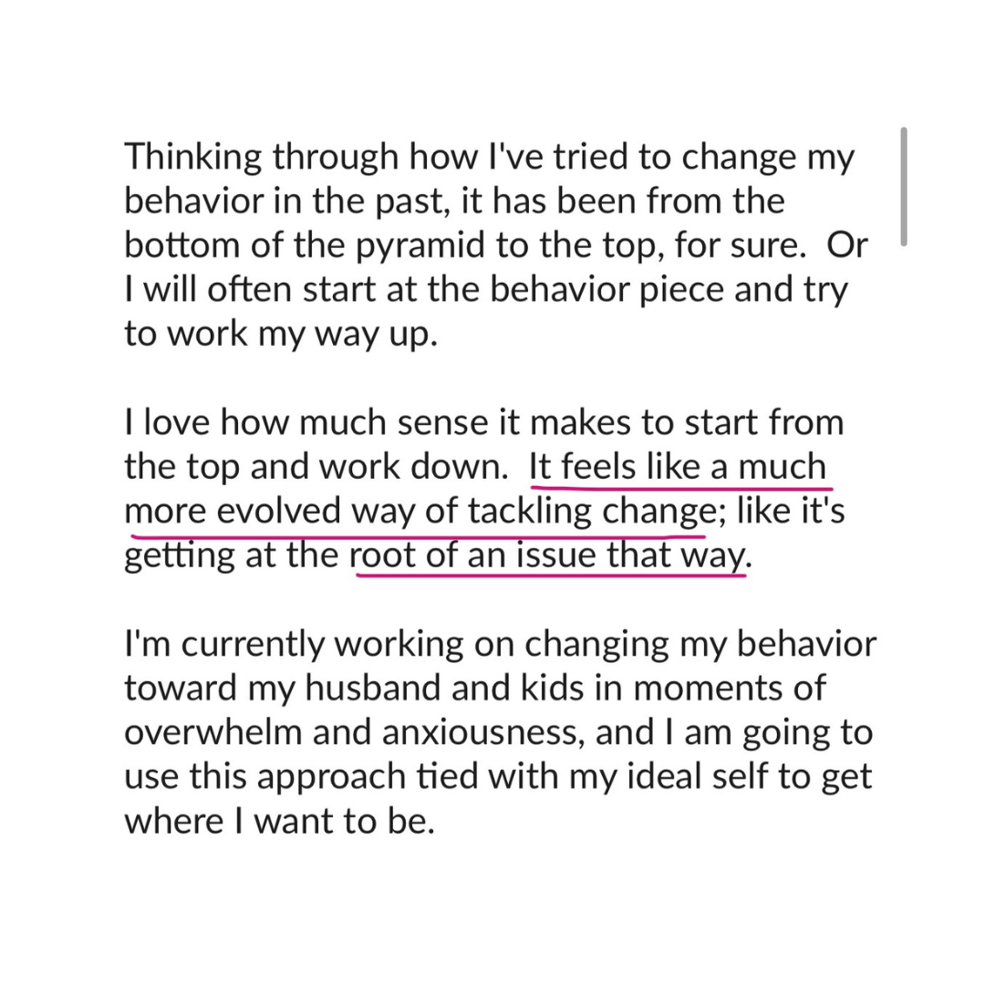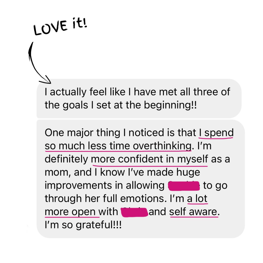 Now I feel completely empowered since my usual triggers are no longer able to control my emotions and actions. My mama heart has never been in a happier place! Doing this work has been the answer to SO MANY questions in my life (even eliminating all-or-nothing thinking that previously led to repetitive failures like sticking to working out).