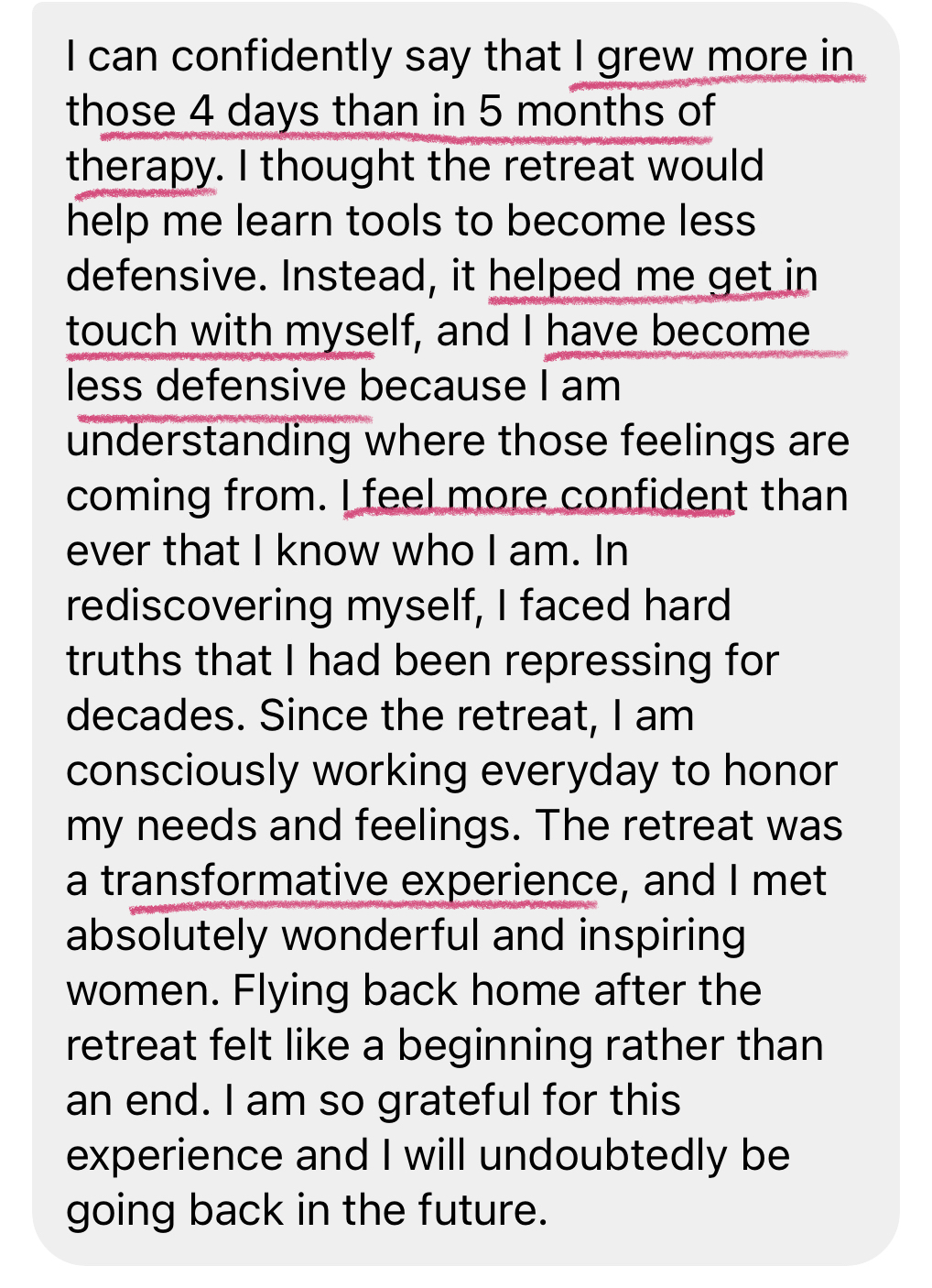 I went to the retreat and I was fully seen, loved and cared for by women.