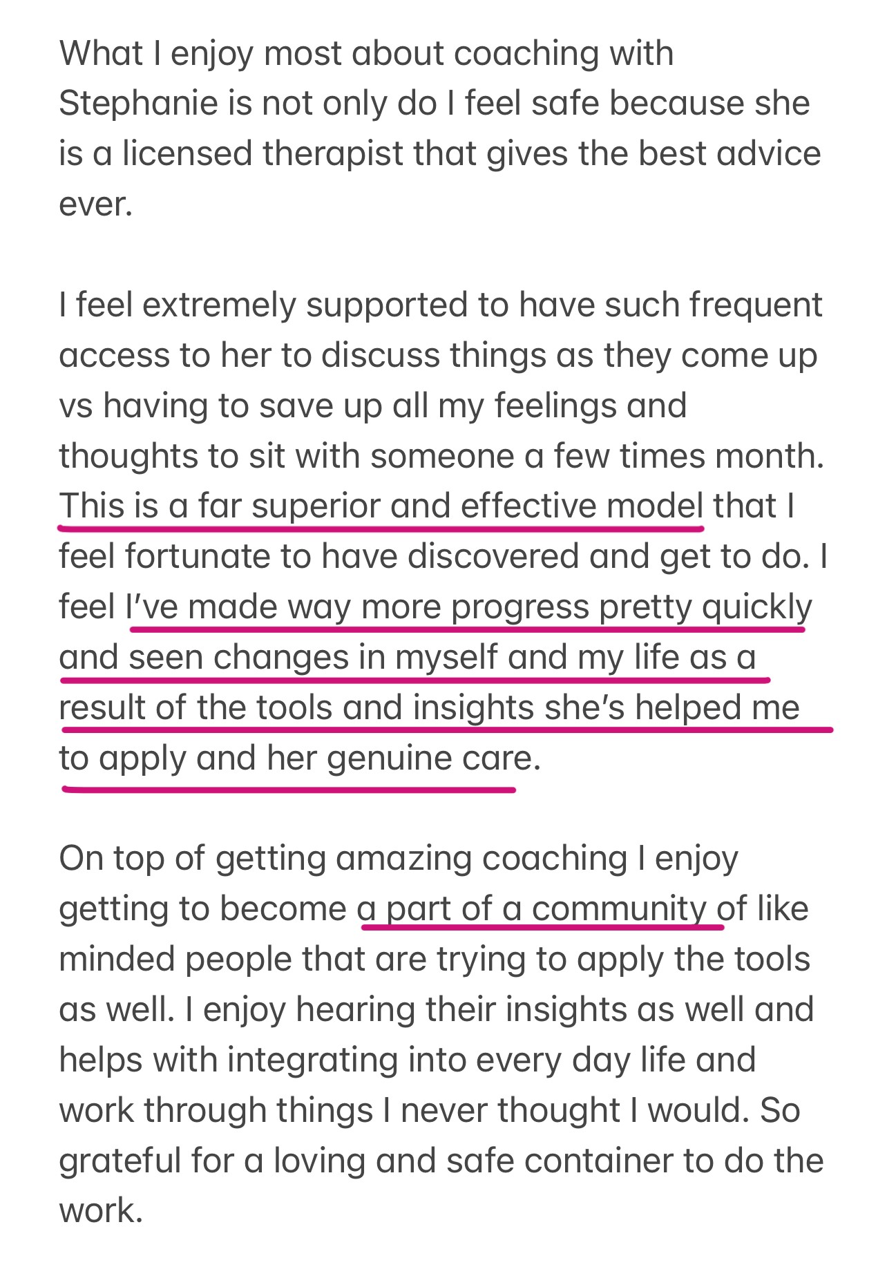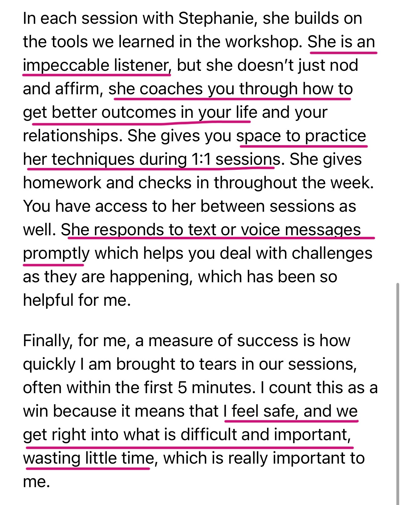 "Stephanie’s coaching is life changing in the most positive way. "